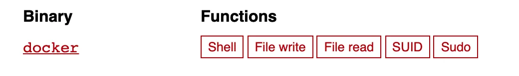 The Docker gtfobin provides ways of escalating priveges with docker.